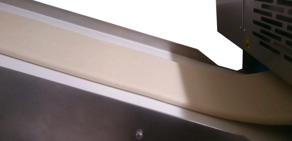 Permite alimentar sin recortes cualquier máquina que necesite una banda de masa en continuo, pudiendo regular la máquina fácilmente para diferentes anchos y gruesos.
