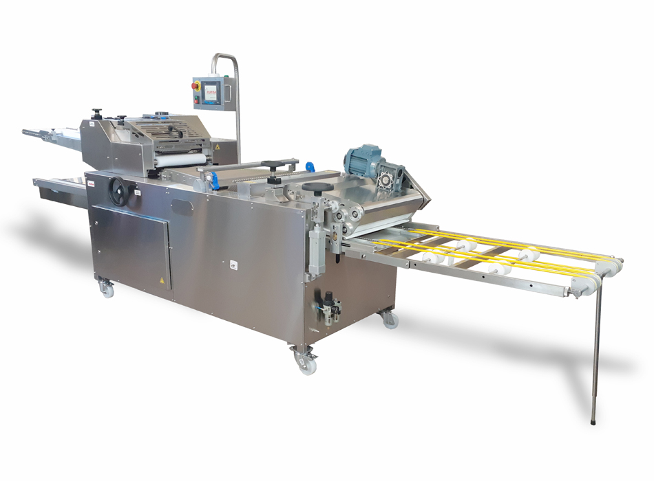 Máquina muy versátil que permite fabricar varios productos con una sola máquina. También permite utilizar bandejas de 60 x 40 cm. acanaladas en los dos sentidos, según el producto que queramos fabricar, por ejemplo, es posible trabajar con bandejas de 60 cm. con canales transversales para colines artesanos o camperos y utilizar la misma bandeja para colines normales (entrada a 40 cm.), reduciendo considerablemente la inversión a realizar ya que se aprovechan las mismas bandejas.