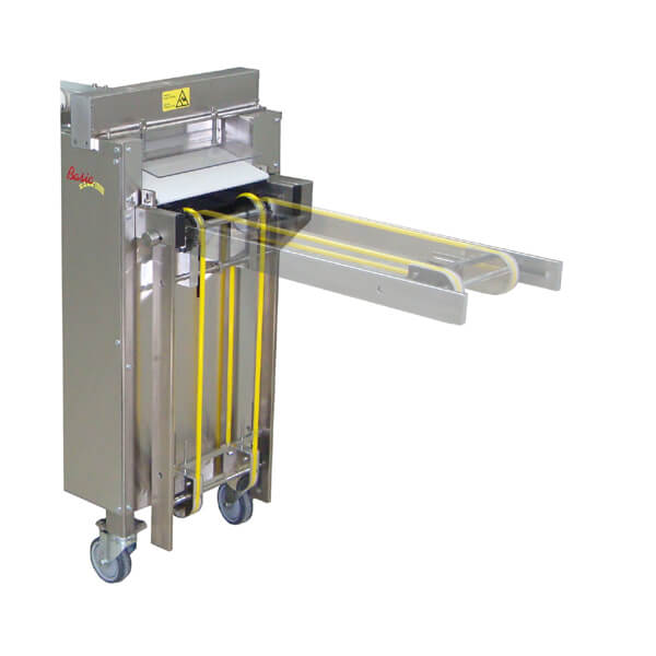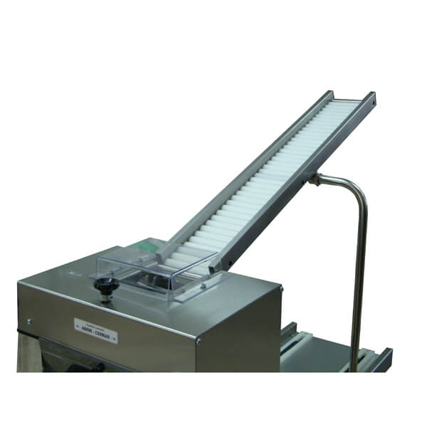 • Teja de entrada de masa con rodillos, regulable en altura.