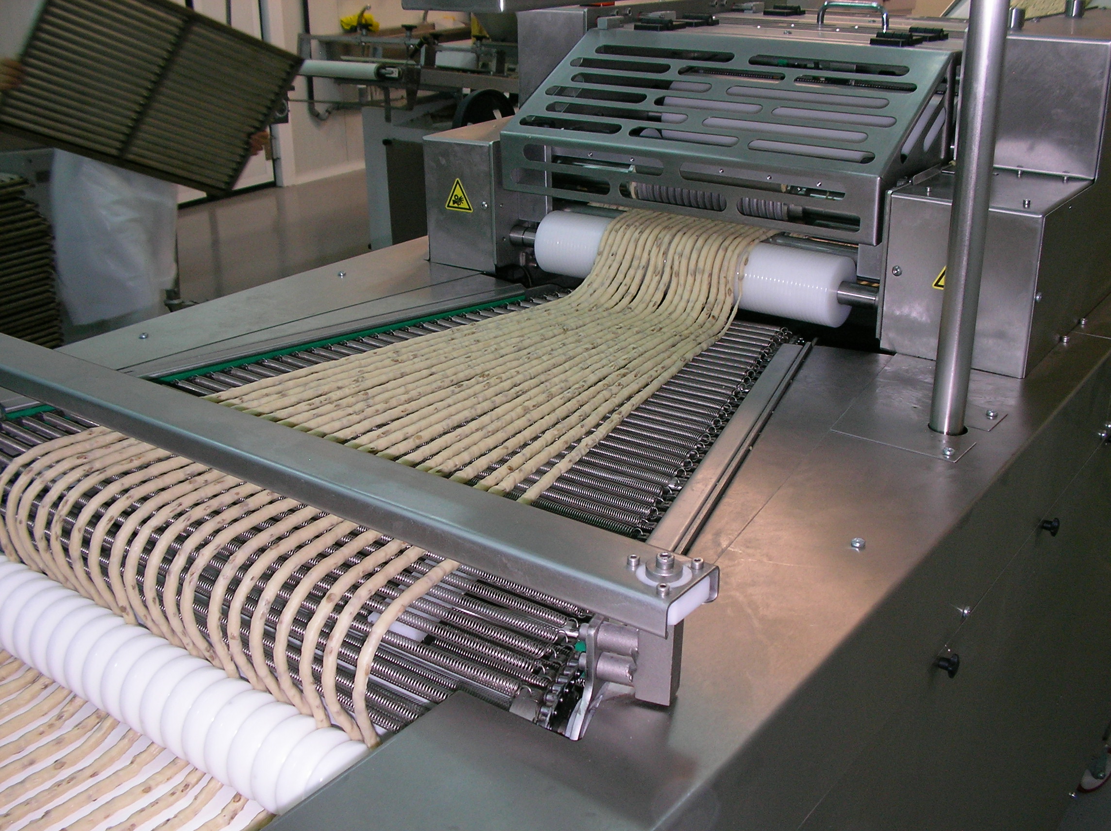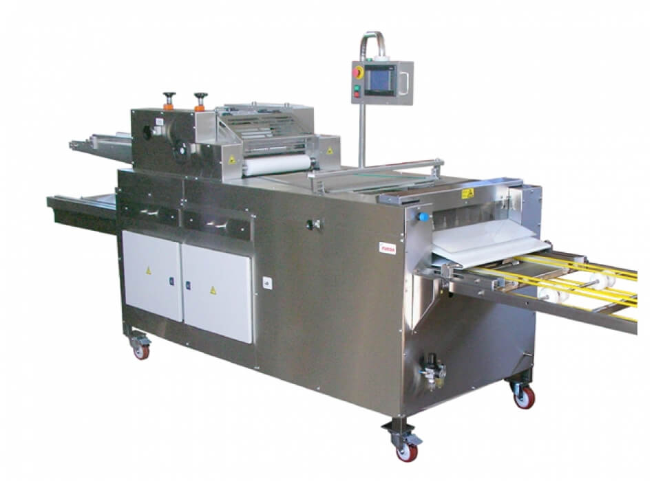 Máquina especialmente diseñada para masas blandas o con mucho aceite. El sistema de trabajo horizontal garantiza que la masa no descuelgue ni se rompa. La separación del producto se realiza mediante un separador de muelles, es fácilmente regulable, pudiendo abrir o cerrar la separación simplemente con un mando y sin detener la máquina. Multitud de avances incorporados, como la separación entre productos o entre bandejas regulable indistintamente. Fabricada para un trabajo continuo.
